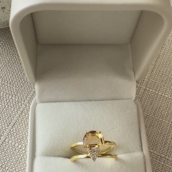 El Anillo Pendulum con Yellow Citrine combina energía, luminosidad y diseño minimalista, ideal para mujeres que buscan joyas modernas con significado.