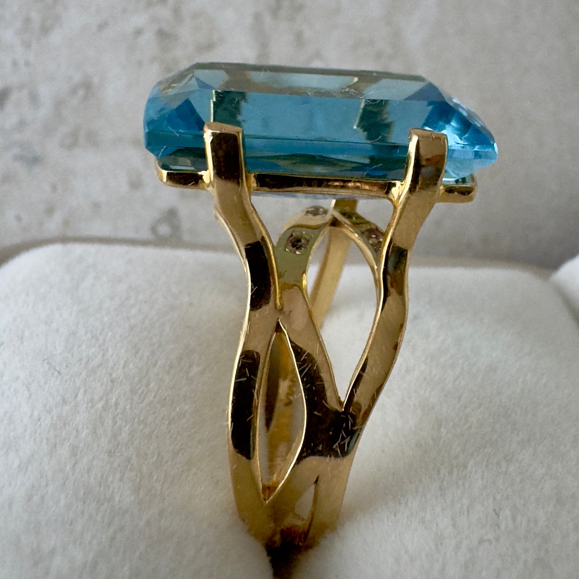 Anillo en vermeil oro 18k con una impresionante Blue Topaz de corte antiguo. Una joya fina, luminosa y moderna, perfecta para sorprender con un detalle elegante y sofisticado.