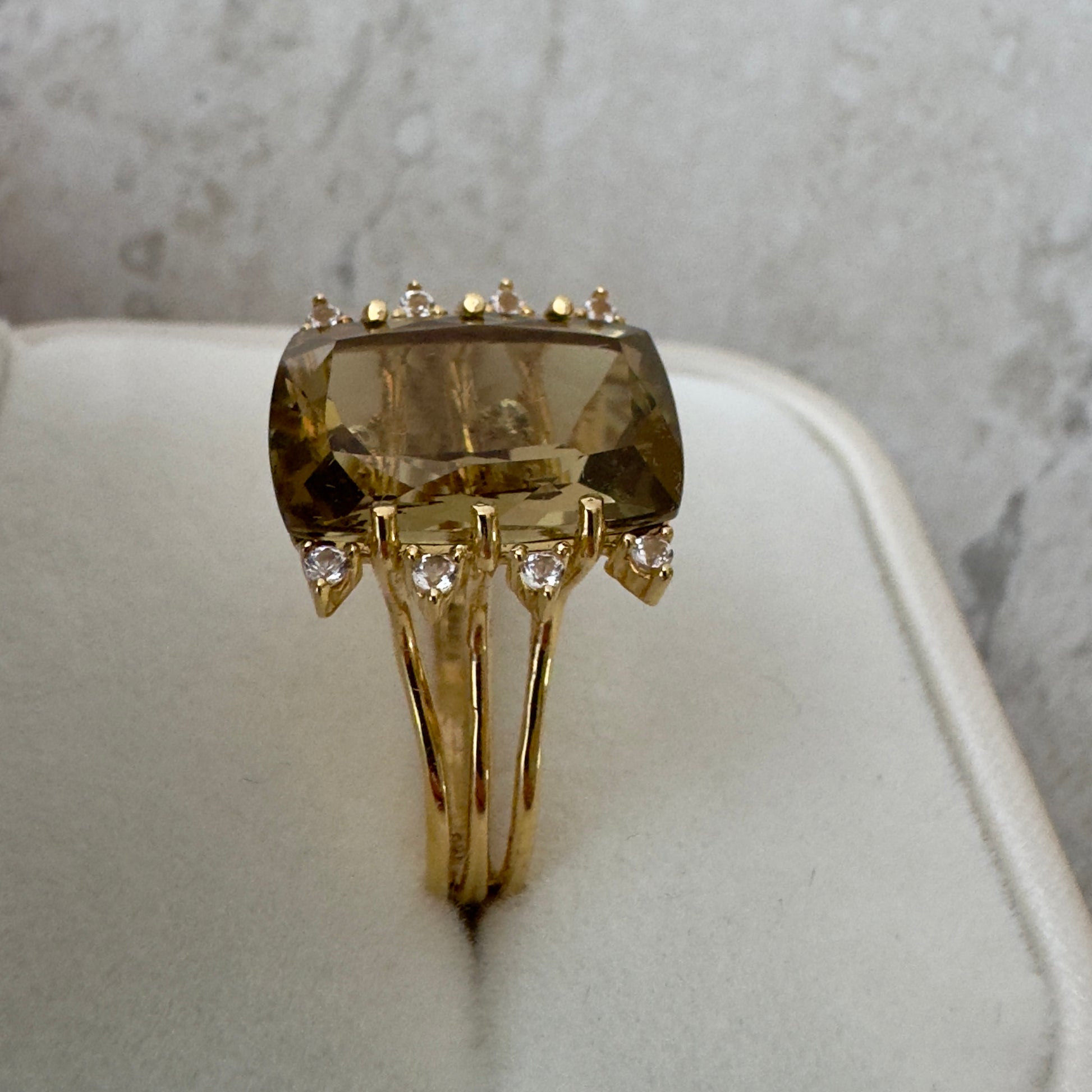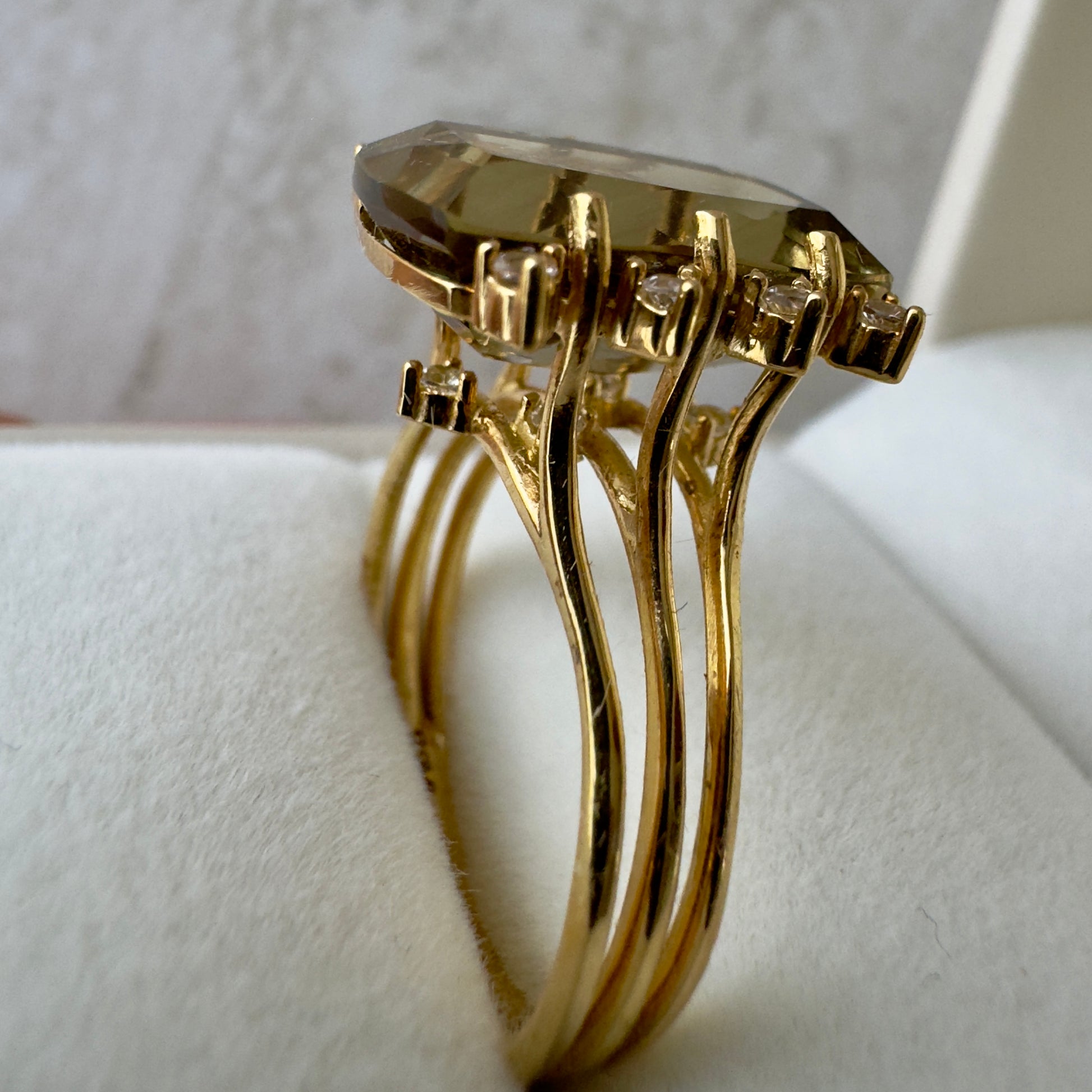 Anillo Vermeil Transparenza con Olive Quartz | Oro 18k sobre Plata 925