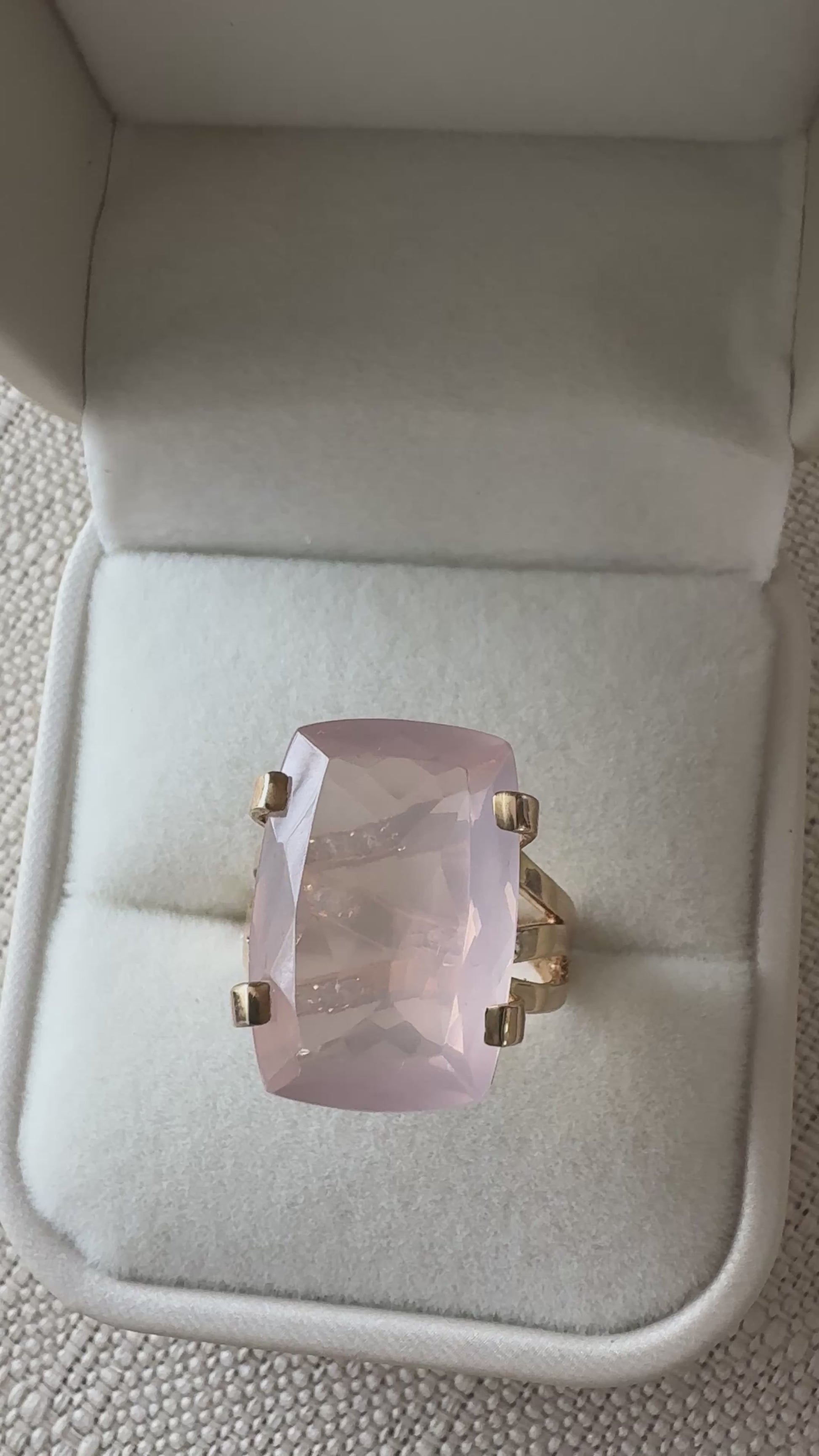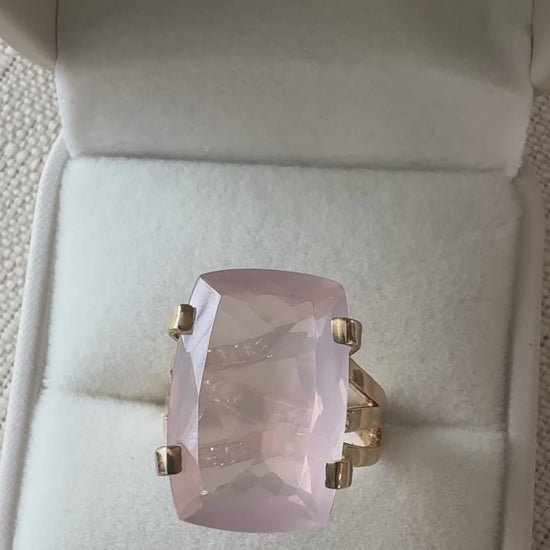 - Piedra central: Rose Quartz de corte antiguo – 11,8 cts
