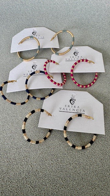 Los Hoops Coral Grande celebran la delicadeza de la naturaleza y el arte indígena. Cada par es tejido a mano por la comunidad Wounaan del Chocó, utilizando la técnica ancestral de entorchado con fibra de palma de werregue, teñida de manera natural. El resultado es un aro liviano, colorido y lleno de tradición que aporta un toque sofisticado a cualquier look.