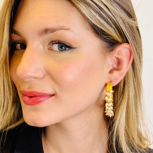Disponibles en tres tonalidades exclusivas —Black, Rutilated y Pearls—, estos aros destacan por su acabado brillante y su capacidad de reflejar la luz con cada movimiento. Ligeros, cómodos y de inspiración moderna, son un must-have en toda colección de joyas.
