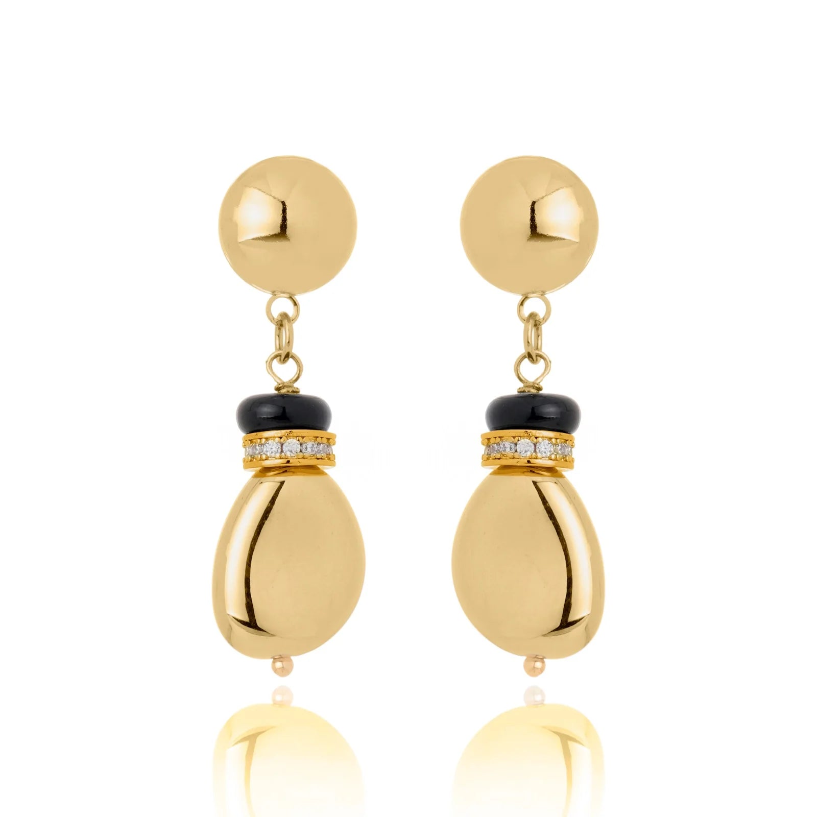 Diseño: Lágrimas doradas con cabujones negros y acentos pavé