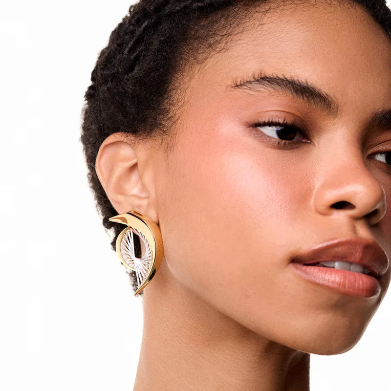 Los Aros Vértil de la Colección Corpo e Alma representan el equilibrio perfecto entre fuerza interior y elegancia exterior. Cada pieza está elaborada con baño de oro y plata, creando un contraste moderno que resalta la individualidad de quien los lleva.