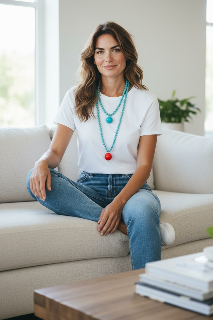 Collar Esfera Cristal y Resina Turquesa - Hecho en Italia