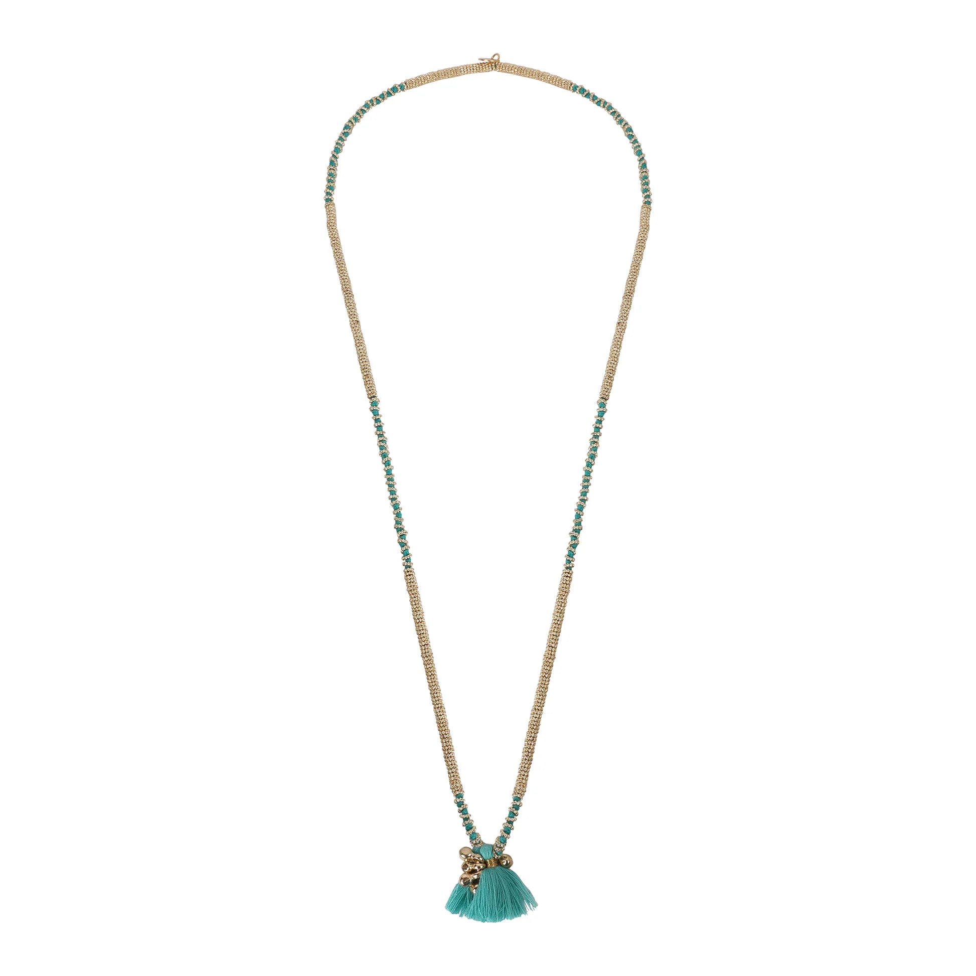 Collar Largo Fulj Dorado Turquesa – Lujo Artesanal