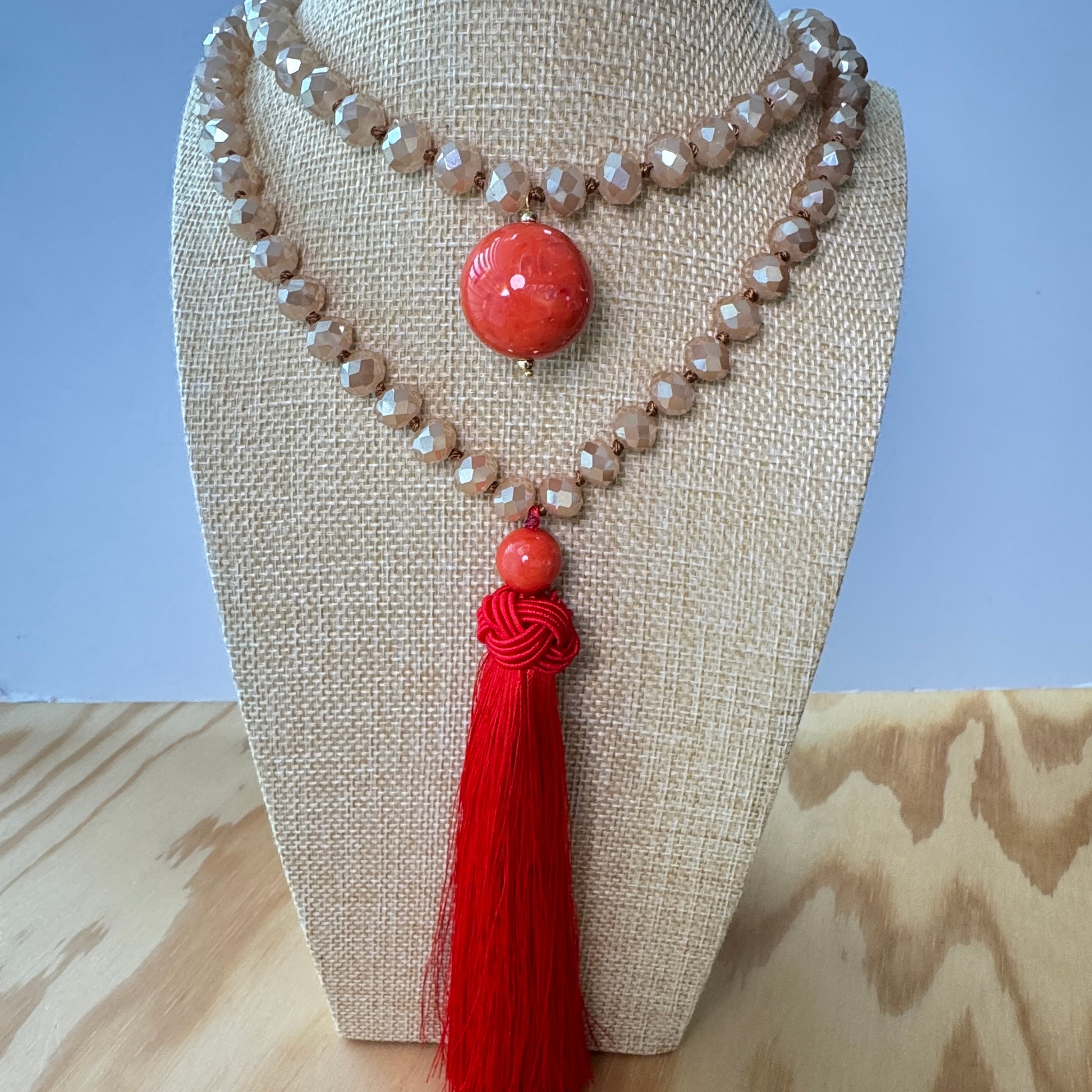 Collar Nappa Naranjo Cristales y Tassel - Hecho en Italia