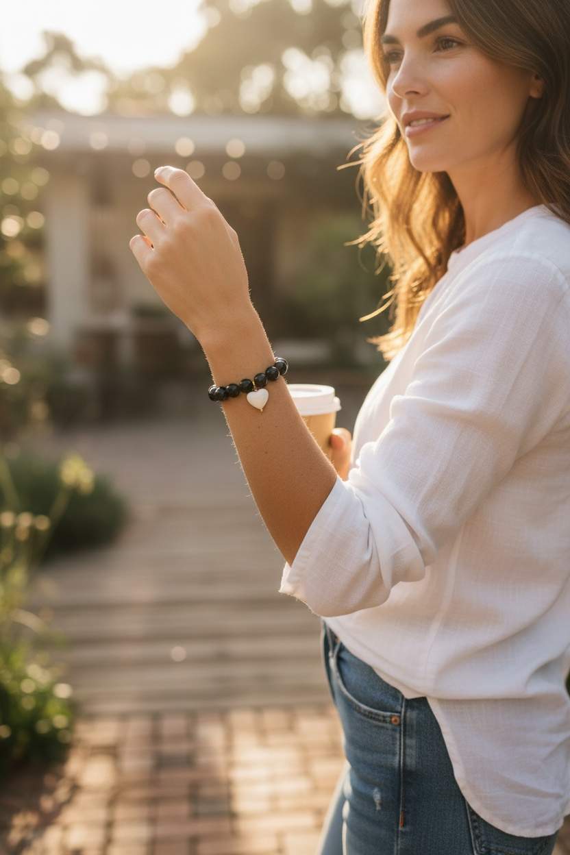 Pulsera Negra Corazón Blanco - Resina Italia