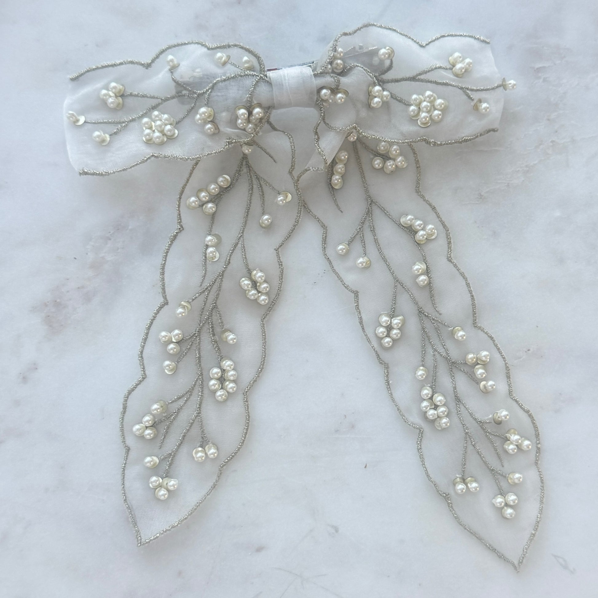 Traba de pelo hecha en organza y bordada a mano de la marca Nam Josh.